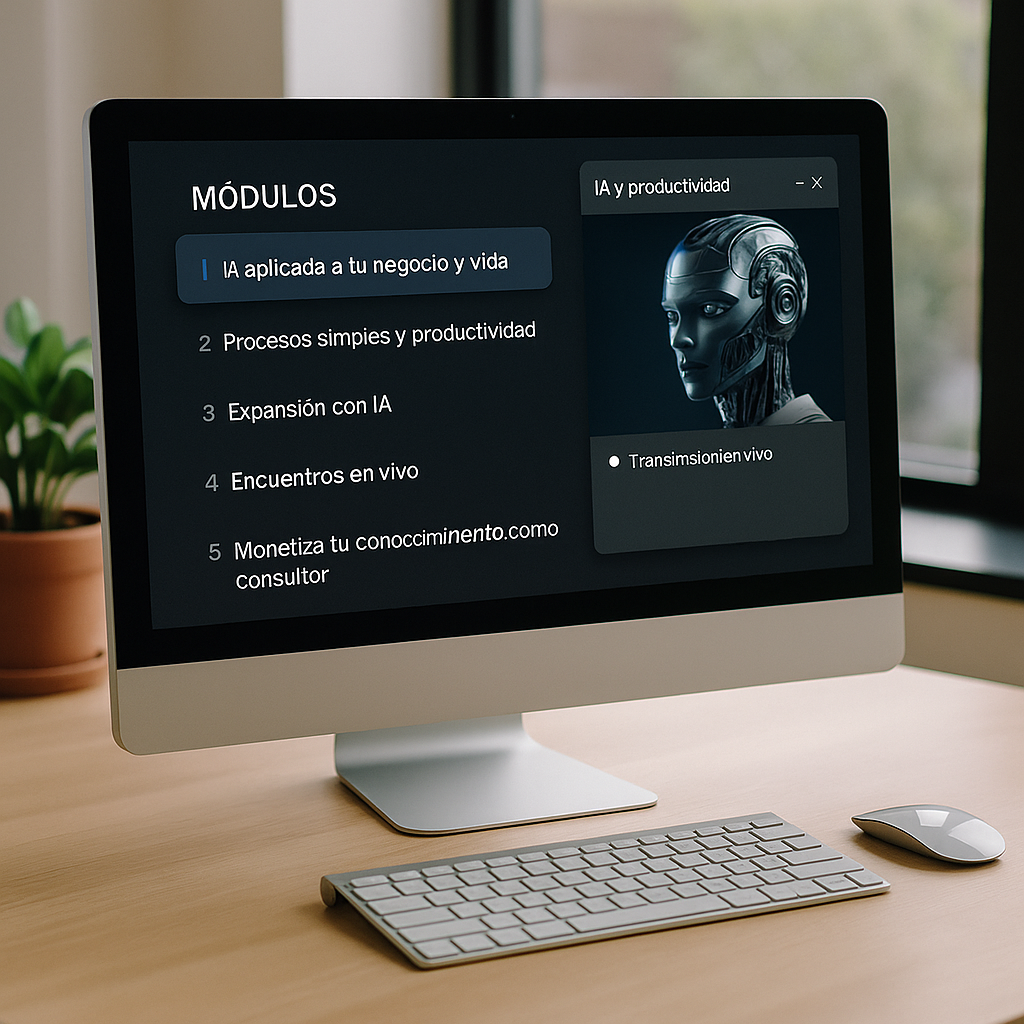 En este módulo vas a descubrir cómo la inteligencia artificial puede convertirse en tu aliada diaria. Desde herramientas simples hasta prompts listos para usar, vas a aprender a aplicarla tanto en tu negocio como en tu vida personal. Todo está diseñado para que lo pongas en práctica de inmediato, sin tecnicismos complicados.